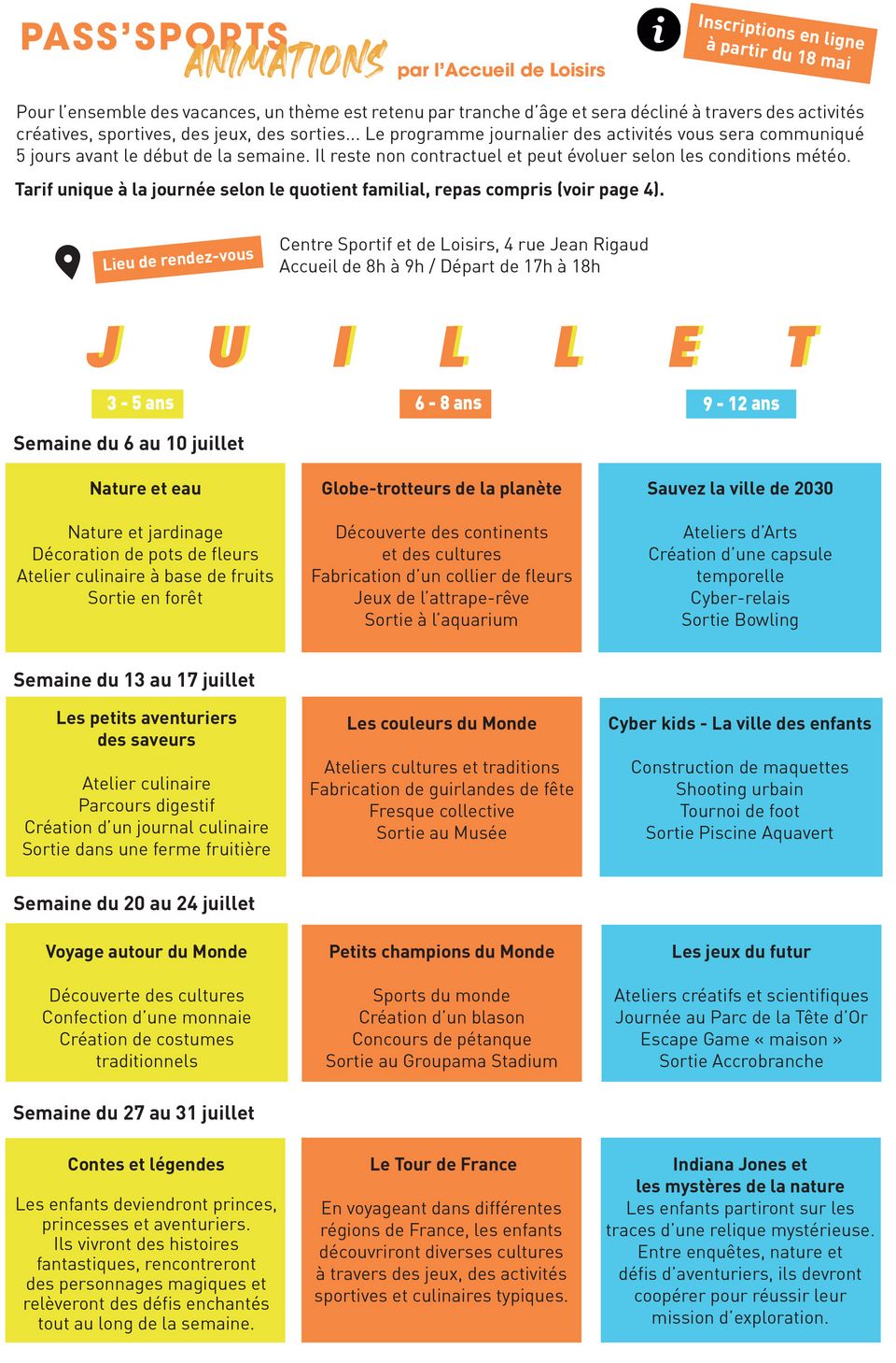 - loisirs adaptés pour les 8-17 ans.