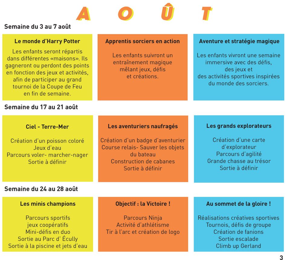 - activités à la journée pour les 3-12 ans,