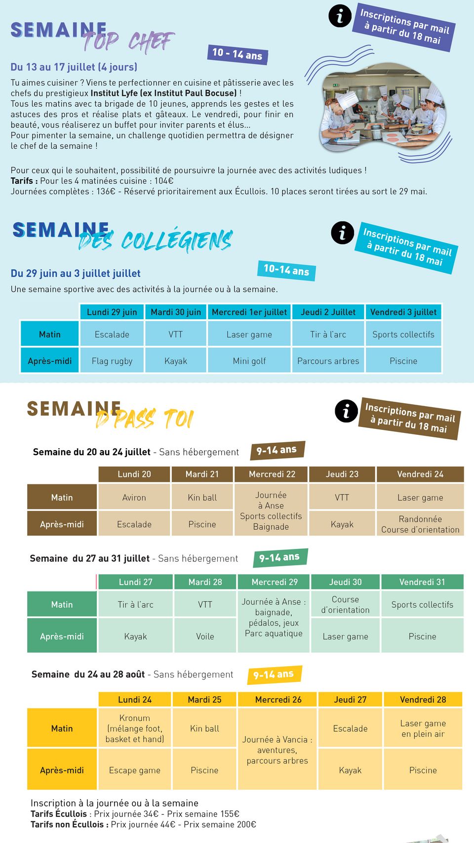 - semaines culturelles ou sportives pour les 9 ou 10-14 ans,