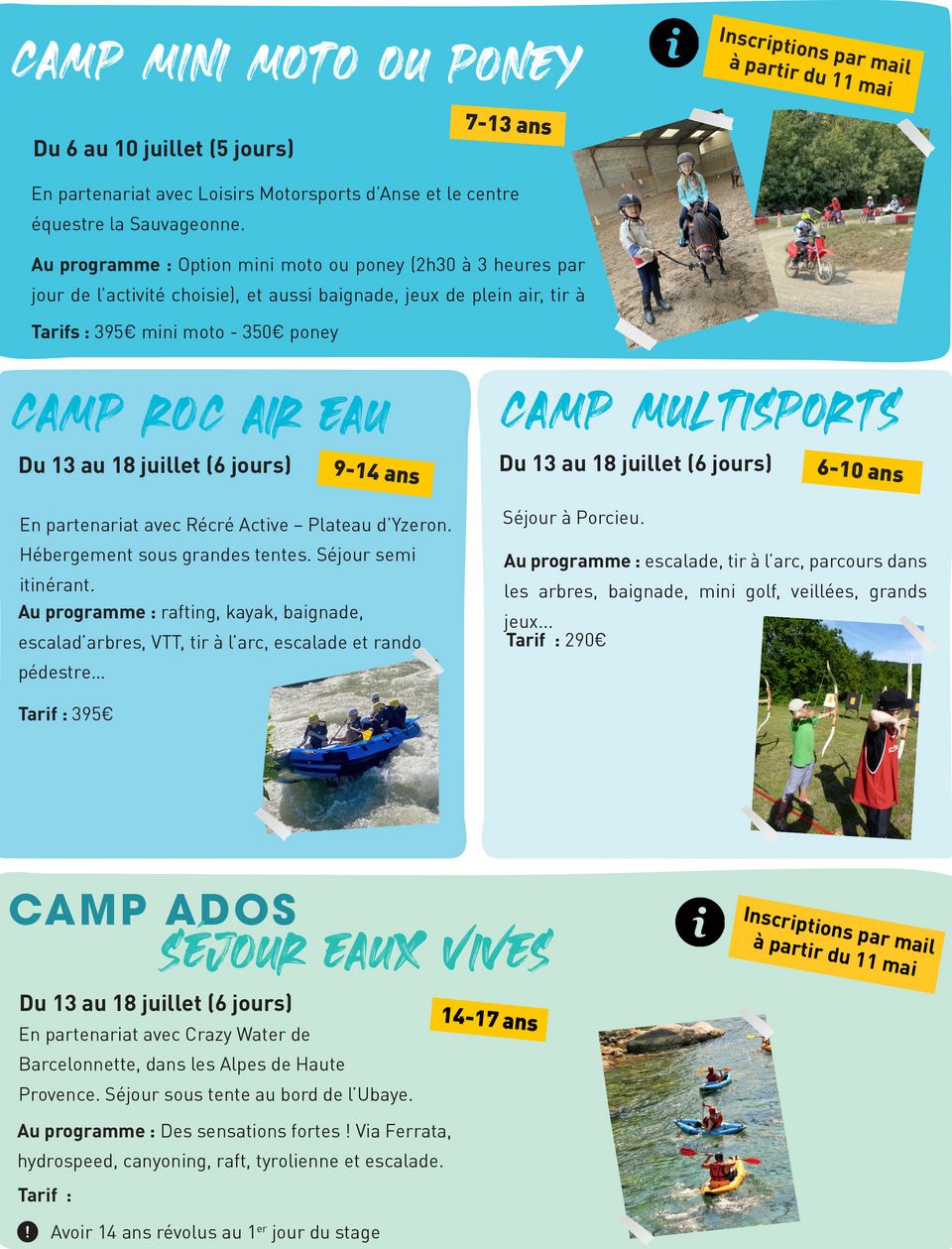 - par mail pour les camps à partir du 11 mai