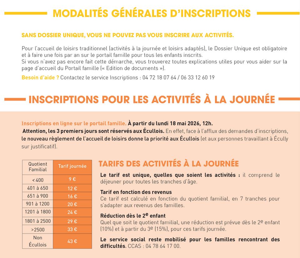 - en ligne sur le Portail famille pour les activités à la journée, et pour les loisirs adaptés à partir du 18 mai