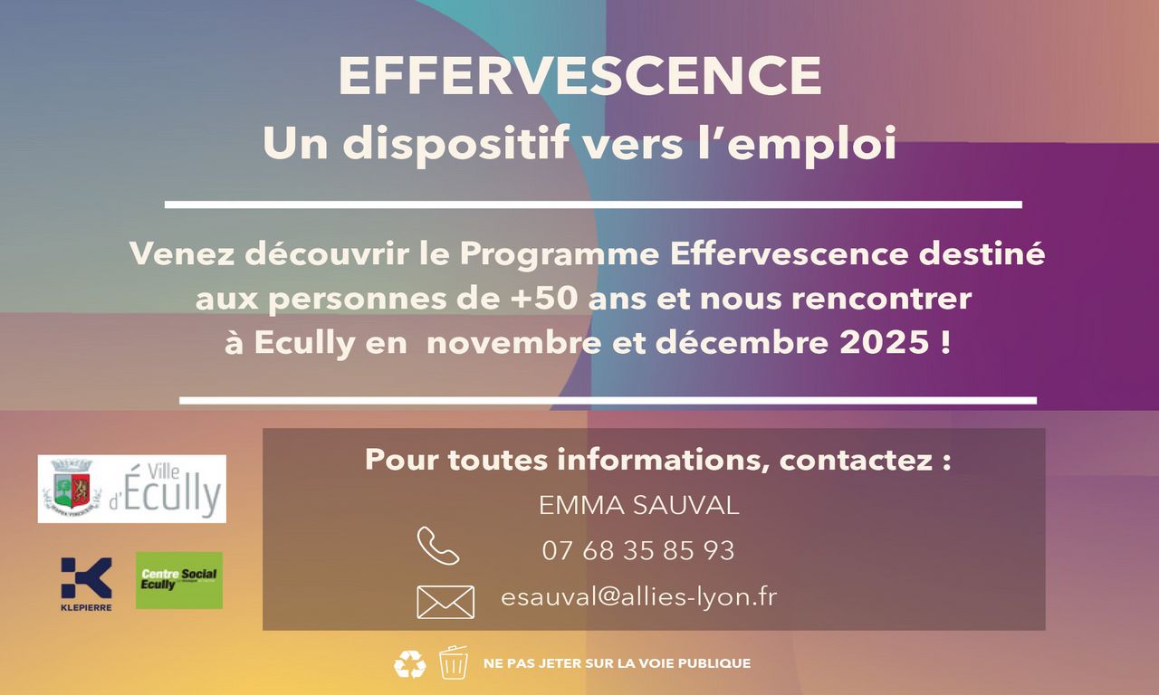 Venez découvrir le Programme Effervescence destiné aux personnes de +50 ans qui souhaitent retrouver une activité professionnelle et rencontrer les animateurs d’Alliés à Écully en novembre et décembre !