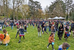 Beaucoup d'enfants avaient joué le jeu du déguisement, notamment sur le thème proposé des animaux, et l'on croisait coccinelles, licornes, fauves et autres dinosaures afférés à chercher les précieux oeufs !