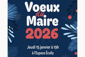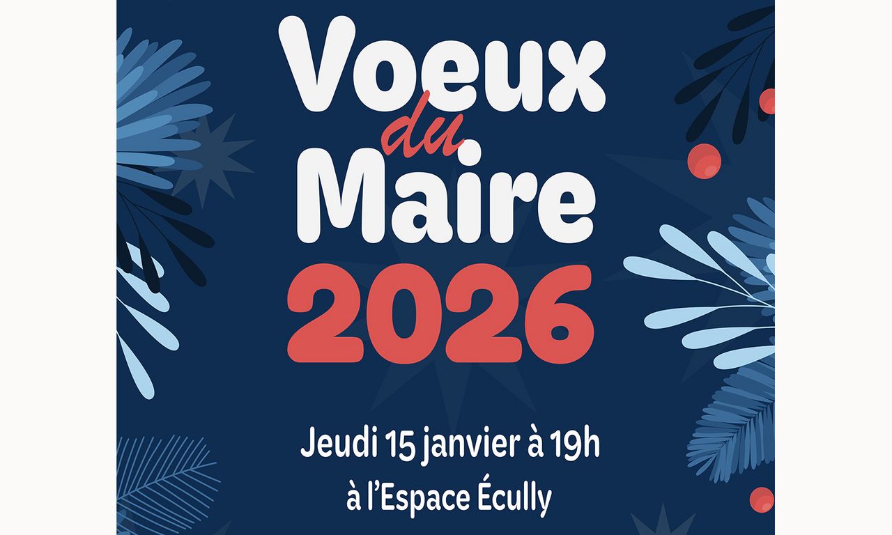 La cérémonie des vœux du maire à la population se déroulera le jeudi 15 janvier à 19h à l’Espace Écully.