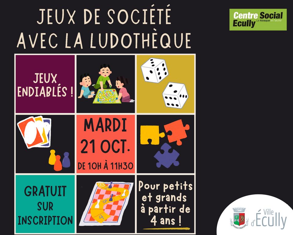 Venez participer à la matinée jeux de société proposée par la ludothèque : mardi 21 octobre de 10h à 11h30 à la Médiathèque.