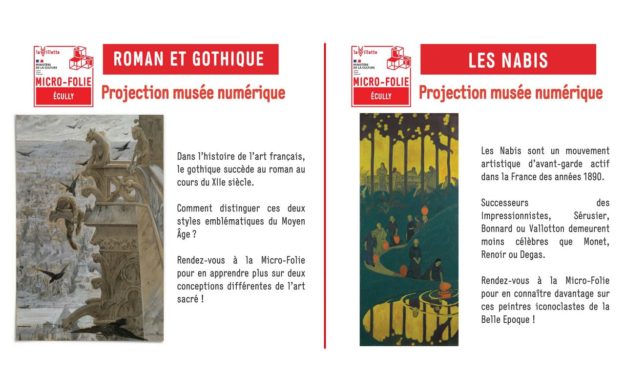 La Micro-Folie, musée numérique virtuel, vous propose de découvrir différents courants artistiques… à travers des projections commentées à la bibliothèque des Sources, le vendredi à 10h, à la bibliothèque des Sources, 48 chemin de Montlouis.