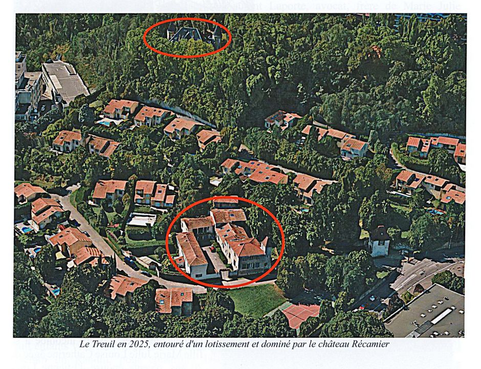 Le Treuil en 2025, entouré d'un lotissement et dominé par le château Récamier