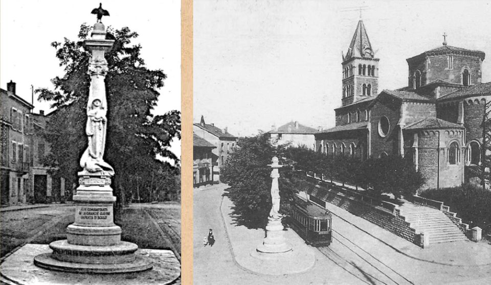 Le Monument de la Victoire sera déplacé deux fois : d’abord à l’est de la place de la Libération, puis à son emplacement actuel, après la reconfiguration du site à la fin du XXe siècle.